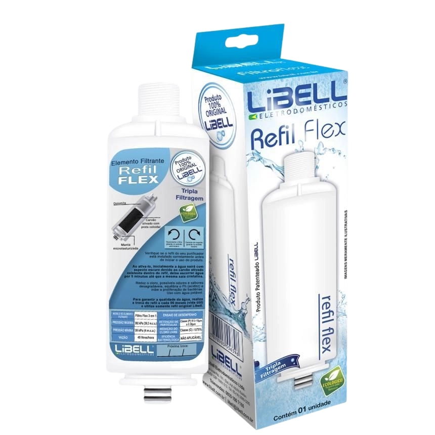 Os Purificadores Acquaflex, Press, Press Baby e Press Side da possuem um refil (elemento filtrante) de tripla filtragem, desenvolvido para uso com água potável, e tem a finalidade de reter impurezas contidas na água, assim como reduzir a concentração de cloro, odores e gostos desagradáveis presentes e atenuar o PH (acidez) da água.